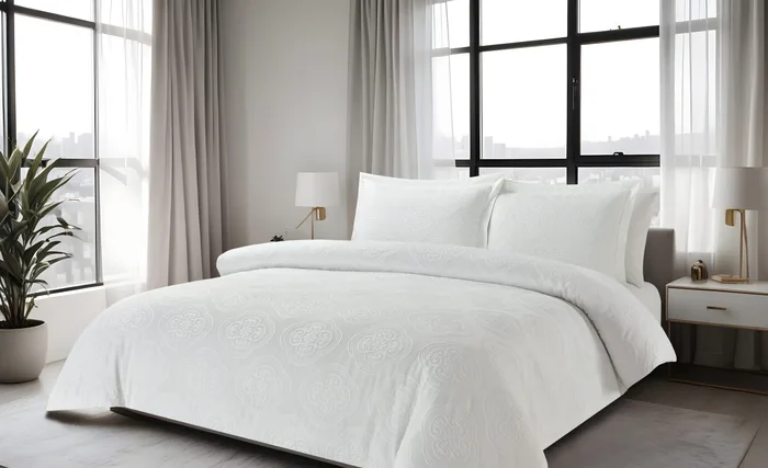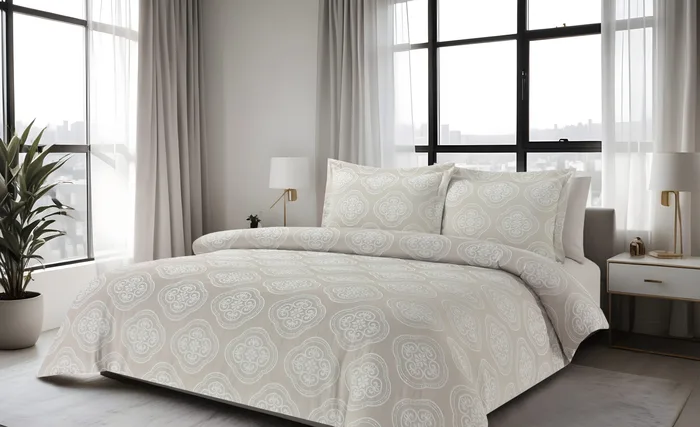 שדרגו את חוויית המנוחה שלכם עם מערכת מצעים יוקרתית בגימור ג'אקרד מרהיב.