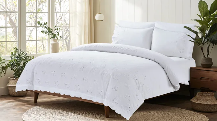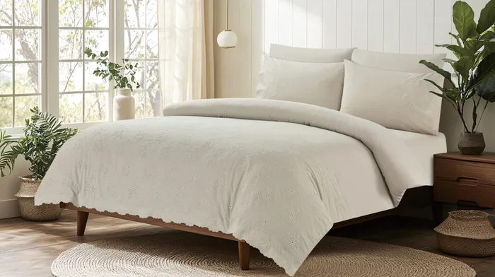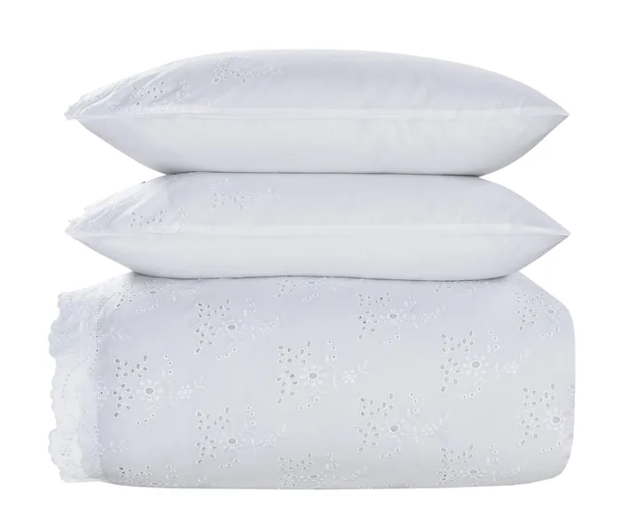 הסט מתאפיין בעיצוב נקי ומוקפד, המשלב רקמה אנגלית עשירה ואמנותית המעטרת את הציפה והציפיות.