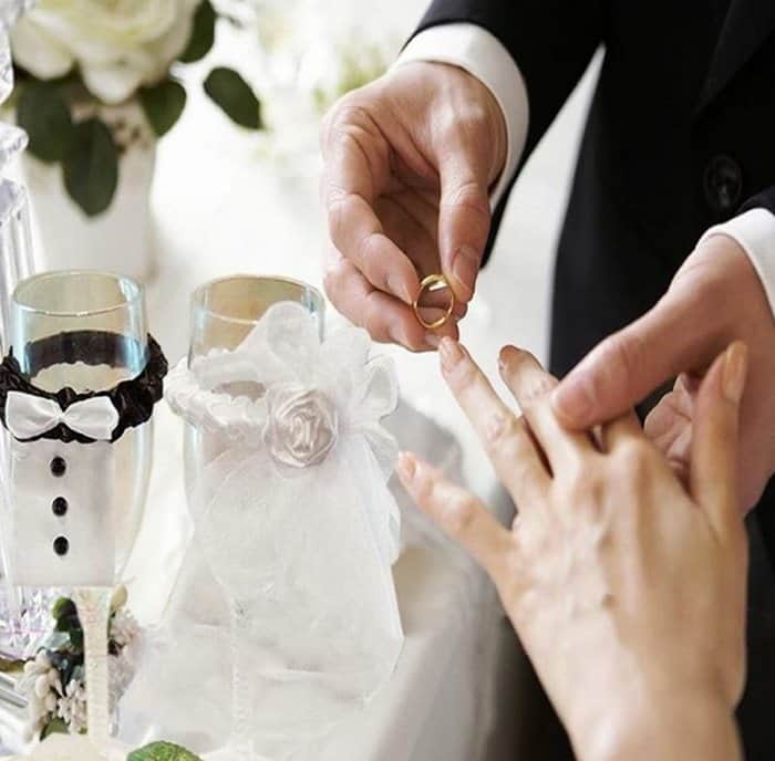 זוג כוסות שמפניה מזכוכית בעיצוב חתן כלה