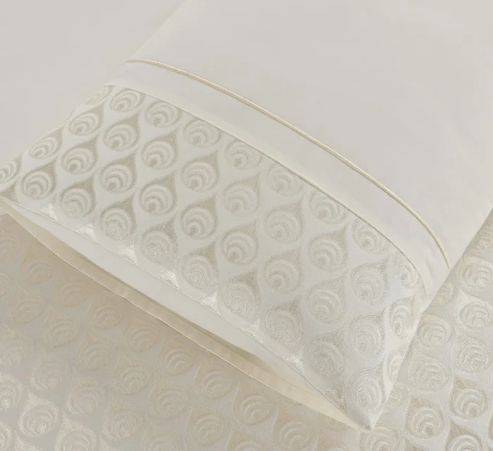 עיצוב הסט משלב בדי ג'אקרד ארוגים בדוגמא עשירה בשילוב ריקמות המוסיפים ענין וקסם לסט