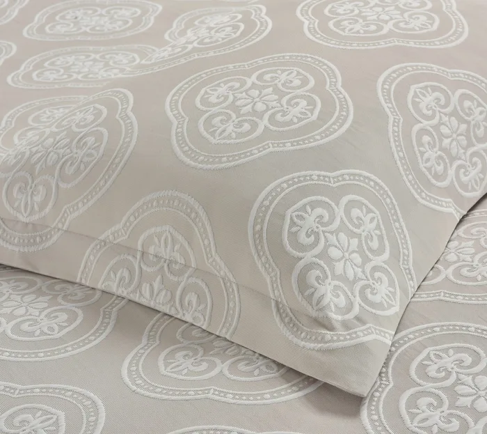 שדרגו את חוויית המנוחה שלכם עם מערכת מצעים יוקרתית בגימור ג'אקרד מרהיב.